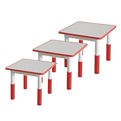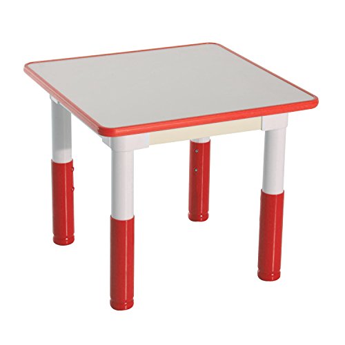 Features: Ideal for playrooms, classrooms, day cares, and more Helps promote child development 7 levels of height adjustment for the growing child Round corners for improved child safety Easy to Clean Specifications Net Weight: 30lbs Weight Capacity: 110lbs Table Size: 23 3/4" X 23 3/4" Adjustable Height: 18 7/8" - 23 5/8" 0
