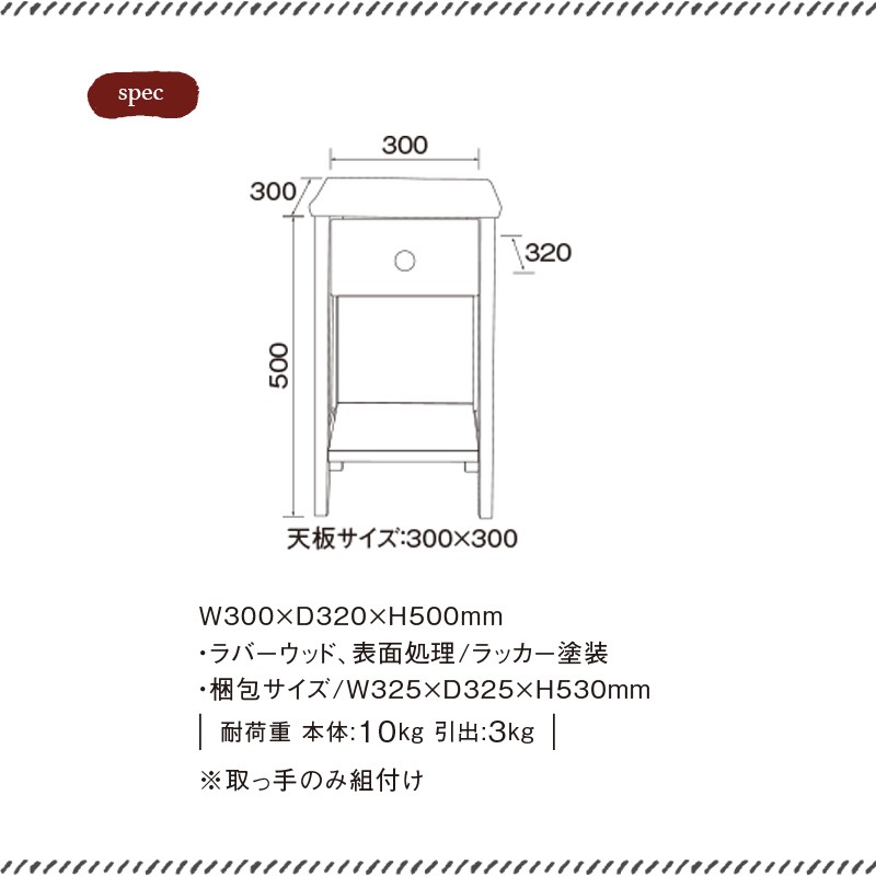 ◆商品説明◆かわいいだけじゃないのがちょうどいい!甘くなりすぎない私にぴったりの大人かわいいアイテムたち。◆商品仕様◆●商品名:ナイトテーブル RB-T8645●サイズ:W300×D320×H500mm●材質/表面処理:ラバーウッド/ラッカー塗装●耐荷重・本体:10kg・引出:3kg●完成品(取っ手のみ組付け) お届け仕様:お客様組立式◆注意事項◆白家具は長期間直射日光に当て過ぎると白が少しずつ黄変する恐れがありますので、高温多湿,直射日光を避けてご使用下さい。【こちらの商品はメーカー直送品です】※代引きでのお支払い不可※ご指定日受付不可とさせて頂きます。※在庫ありの場合は5日ほどで発送になります※在庫切れの場合いご連絡させていただきます。※同シリーズ以外の商品との同梱はできません。ご了承ください北海道、九州への発送は別途500円加算になりますご了承ください