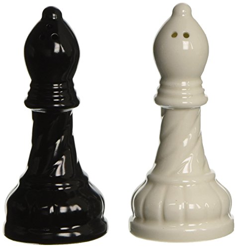 CG SS-CG-56703 Black & White Ceramic Chess Bishop Salt & Pepper Set, 3.375"