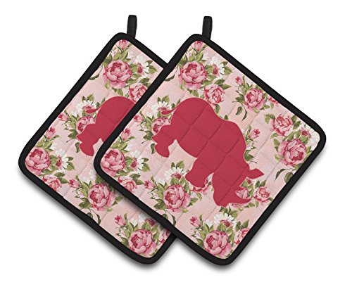 Caroline's Treasures Rhinoceros Shabby Chic Pink Roses Pair of Pot Holders BB1006-RS-PK-PTHD, 7.5HX7.5W, Multicolor