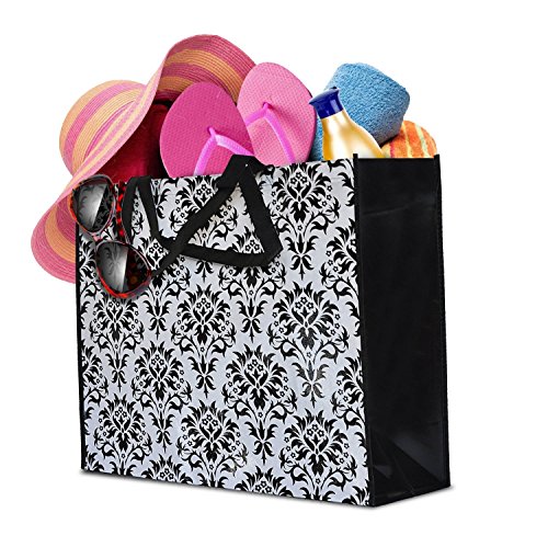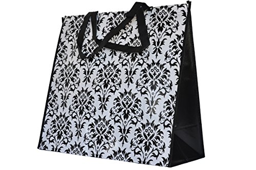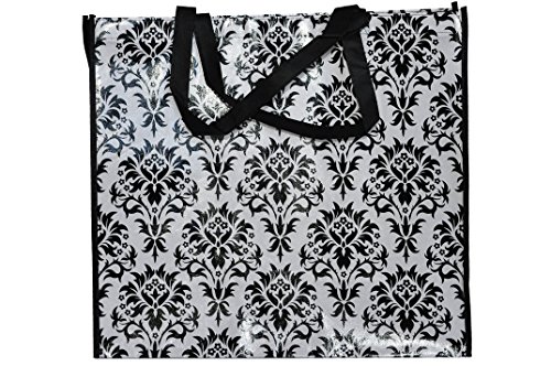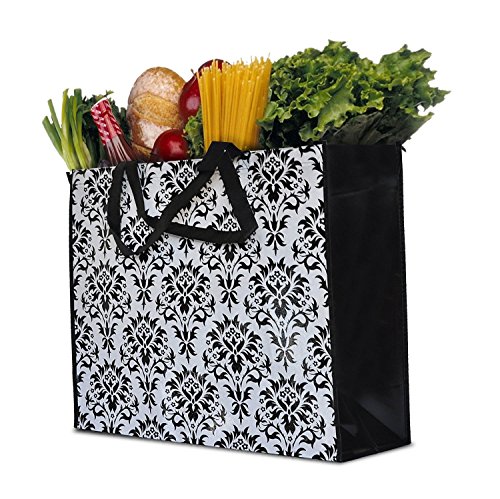 ReBagMe™ Extra Large Very Strong Reusable Grocery Bag - Laminated Recycled Shopper Tote - Very Large Gift Bag - Great Waterproof Beach Bag (19x17x8 Inches, Damask)