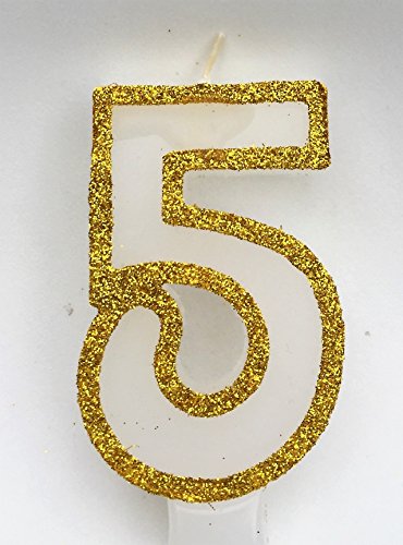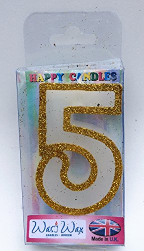 Wasiwax No (5) Birthday Candle - GOLD GLITTER - Browse our store and choose other numbers
