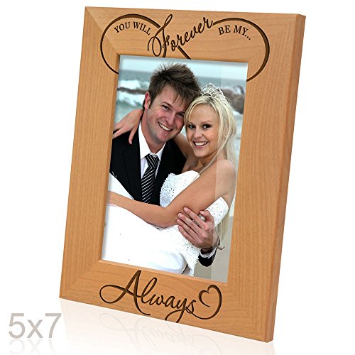 Kate Posh - You will forever be my Always - Infinity sign decor - Engraved Natural Wood Picture Frame - Wedding Gifts, Engagement Gifts, Christmas Gifts, Valentine's Day Gifts (5x7-Vertical)