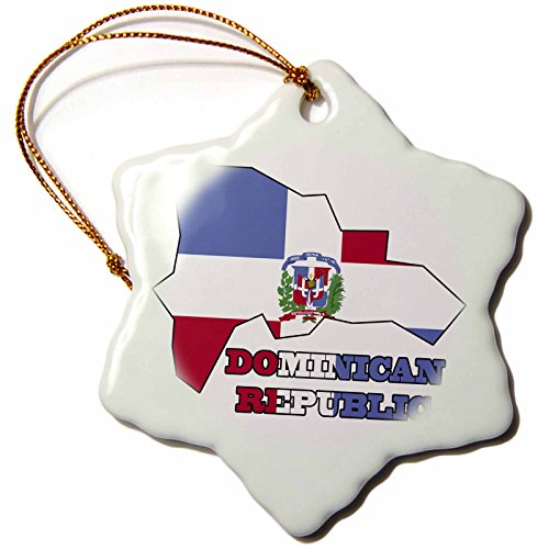 3dRose orn_58772_1 The Flag of The Dominican Republic in The Map Outline and Words Dominican Republic Snowflake Decorative Hanging Ornament, Porcelain, 3-Inch