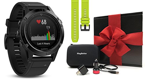 -. Feature : GIFT BUNDLE INCLUDES: Garmin fenix 5 Sapphire (Black with Black Band) Multi-Sport Training GPS Watch, Extra silicone QuickFit 22 watch band (Amp Yellow), PlayBetter USB Vehicle & Wall Charging Adapters, PlayBetter Hard GPS Protective Case, Black Gift Box & Red Bow! **Does NOT include Chest Strap HRM - Only Included in Performer Bundle** / WRIST-BASED HEART RATE - Get accurate heart-rate readings directly from your wrist with the fenix 5's upgraded HR monitoring technology / SAPPHIRE EDITION - Features a beautiful Sapphire lens plus WIFI capabilities / QUICKFIT INTERCHANGEABLE BANDS - Offers 22 interchangeable bands that can be swapped easily with QuickFit technology (no more screws!) / PERFECT GIFT - the PlayBetter Hard Carrying Case and USB Adapters are the perfect compliments to the Garmin fenix 5 for any fitness enthusiast who often finds themselves on the go!