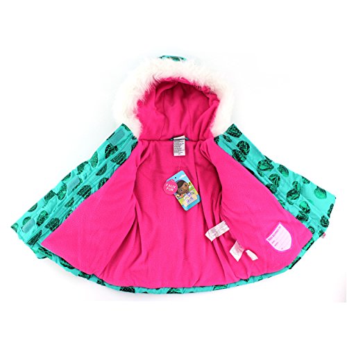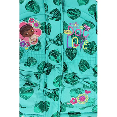 Puffer jacket in foil hearts with smocked waist and Doc McStuffins graphics at chest Self-bows at pocket flaps and covered placket Zip front Faux-fur trim hood Brand : Disney EAN : 0888393024885 Product Dimensions(LxWxH) : 8x8x2cm ; 499 g