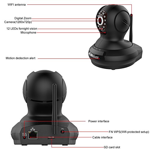 Amgaze HD Pan Tilt IP Wireless Security Camera (Day/Night Vision,720P, WiFi,2 Way Audio, SD Card Slot, Alarm, Mobile Android/iOS/iPhone/iPad/Tablet) For Pet Monitor, Puppy Cam, Baby Monitor(Black)
