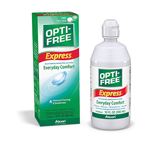 Opti-Free Express Multi-Purpose Disinfecting Solution uses an exclusive formula for cleaning, disinfecting, and removing protein deposits from contact lenses. Opti-Free Express solution cleans by loosening and removing any buildups of protein or other debris that attaches to the lenses. The solution will also eliminate dangerous microorganisms on the surface of the lenses to ensure that infections do not occur. The exclusive 2D formula, which contains Polyquad and Aldox to help get rid of microorganisms that can cause eye infections. For the best results, thoroughly wet and rub each side of the lens for 20 seconds. Afterwards, rinse each side of the lens for 10 seconds with a steady stream of the solution. Let the contact lenses soak inside the lens case for a minimum of 6 hours or overnight. It is safe to leave contact lenses soaking in the solution inside of a closed case for up to 30 days before being cleaned and disinfected again. Opti-Free strives to continue providing patients with the newest and most effective contact lens products on the market for dry and irritated eyes.Feature