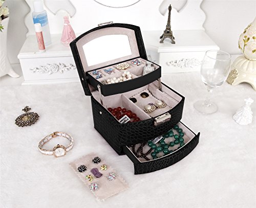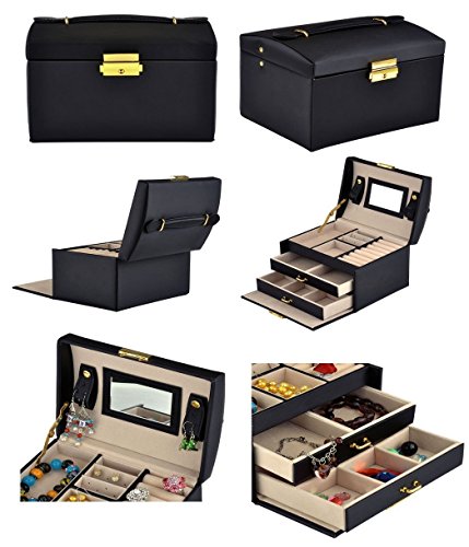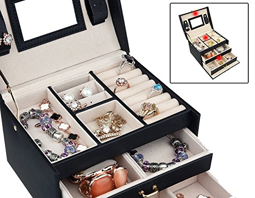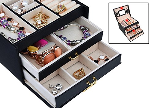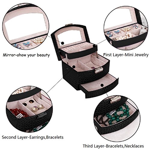 -. Title : Wuligirl Portable Travel Jewelry Case Earring Holder Necklace Organizer Jewelry Case PU Leather Jewelry Organizer with Zipper