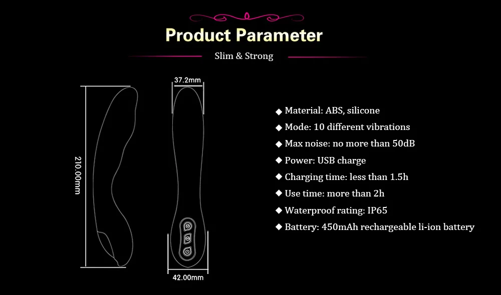 - Special design of bending head, effectively stimulate and massage G-spot and bring lots of intense pleasure