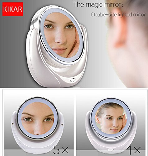 Desktop Double-sided Swivel Makeup Mirror w 10 LED Lightbulbs