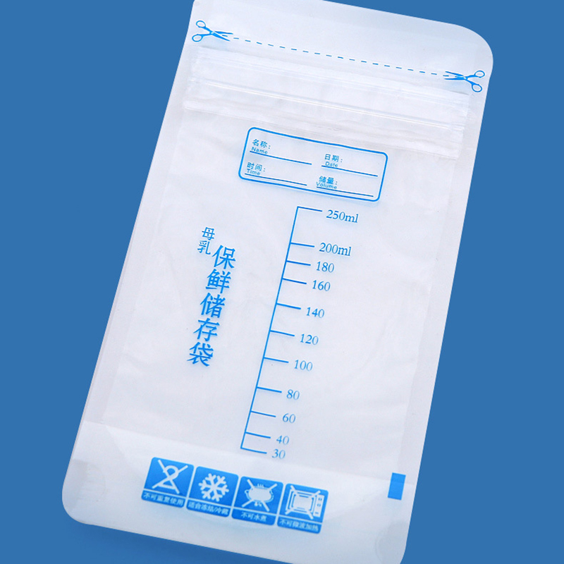 袋子前面的刻度让您可以看到已经表达了多少牛奶。
