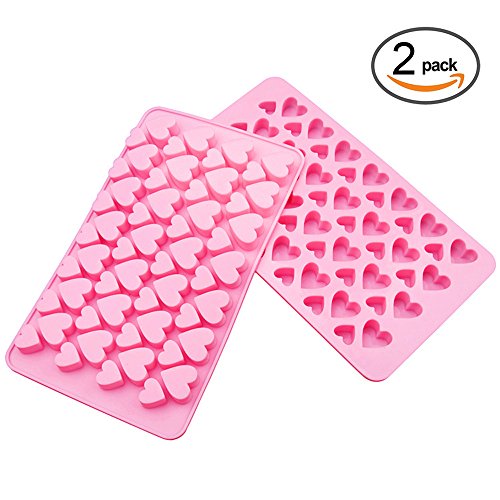 Honbay 56 Cavity Ice Cubes Mold 2PCS Reusable Heart Shapes Silicone Candy Molds Chocolate Molds Jello Molds or Soap Molds