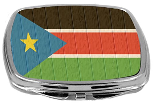 Rikki Knight Compact Mirror on Distressed Wood Design, South Sudan Flag, 3 Ounce
