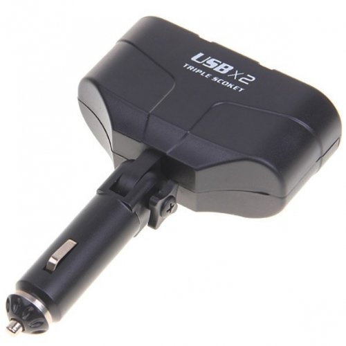 - Feature : FONUS(TM) Car Charger Splitter. The Car Cigarette Charger is designed with 2 sockets and 2 USB ports for convenient usage. / This Socket Car Charger Splitter is suitable for cell phone, GPS, iPod, and PDA. Charge 2 USB devices. / Convert and increase your car cigarette lighter from 1 to 2 sockets plus 2 USB. Simply plug into car's cigarette lighter socket. / The Car Splitter has LED charging indicator. It is adjustable angles up to 90 degree. / Converts single power output to multiple power output. Car Cigarette Lighter Socket is designed for 12V/24V DC. Input: DC 12V/24V. Output: Max. DC 5A (except USB).