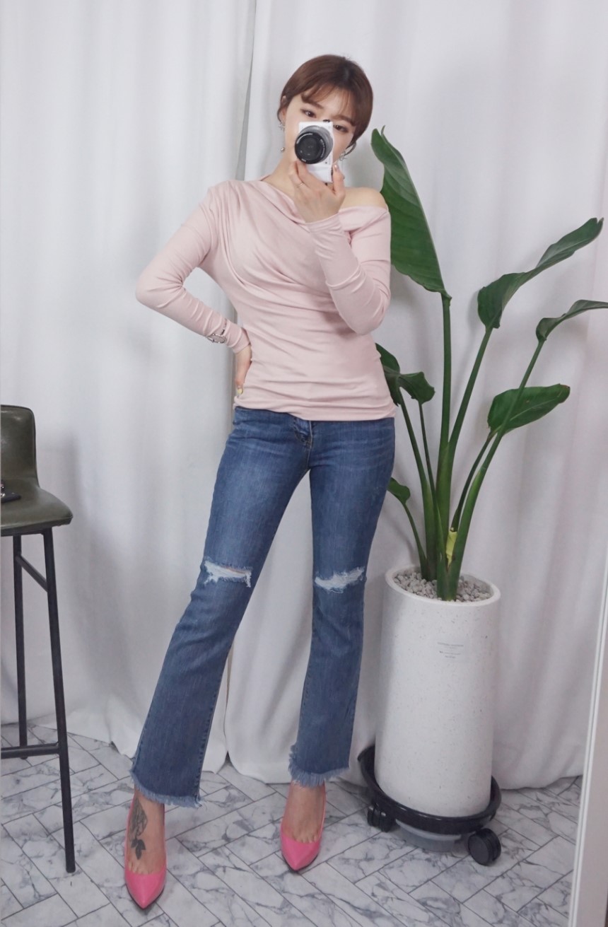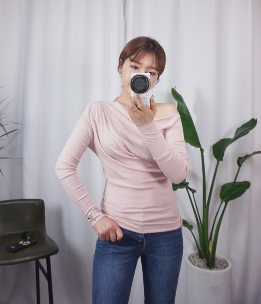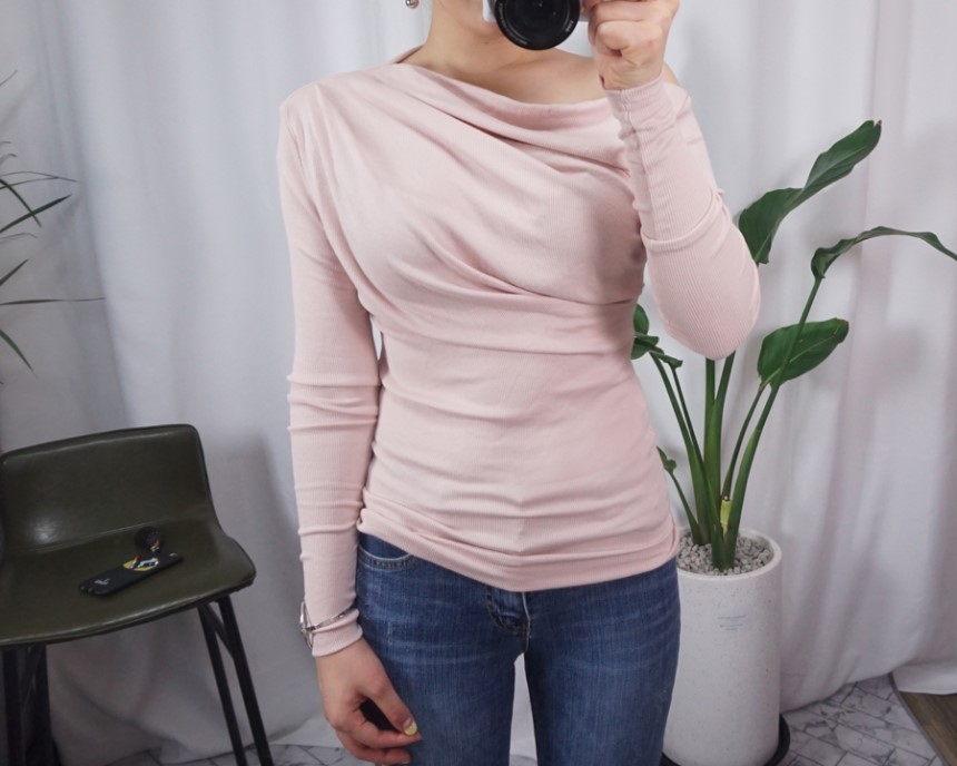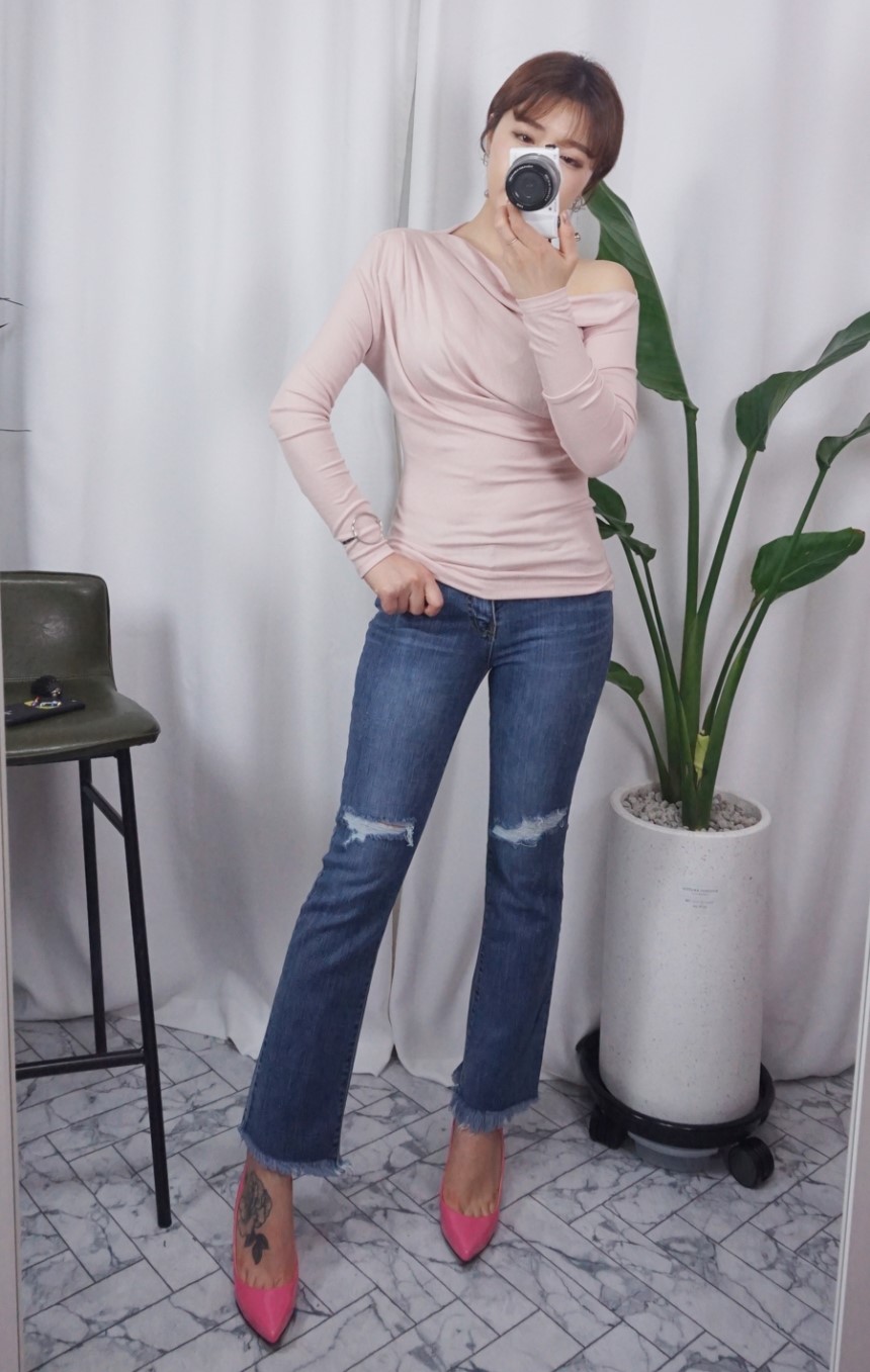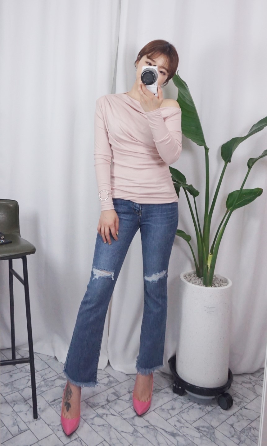 여성스러운 셔링 디테일에 슬림한 티셔츠에요:)