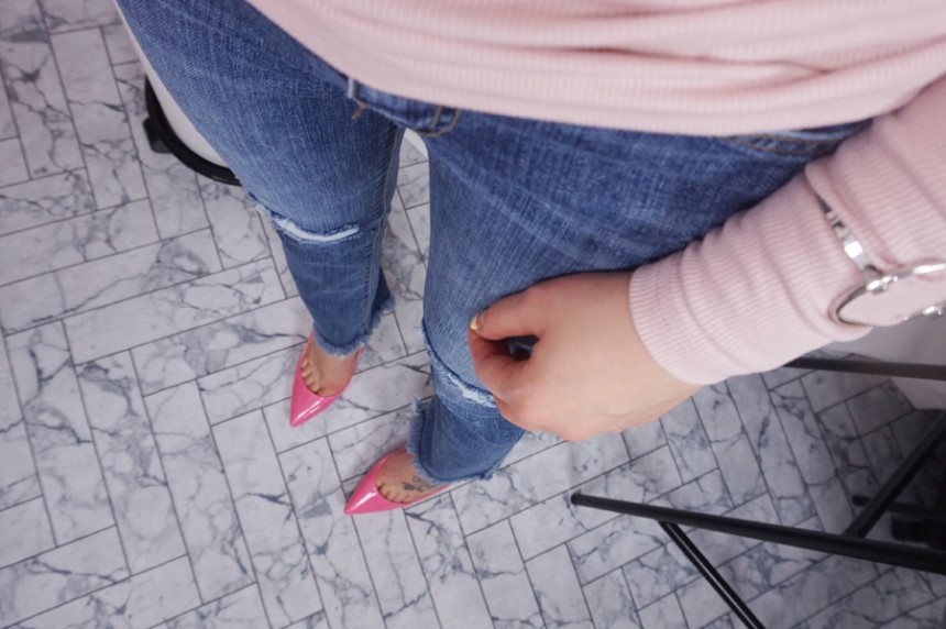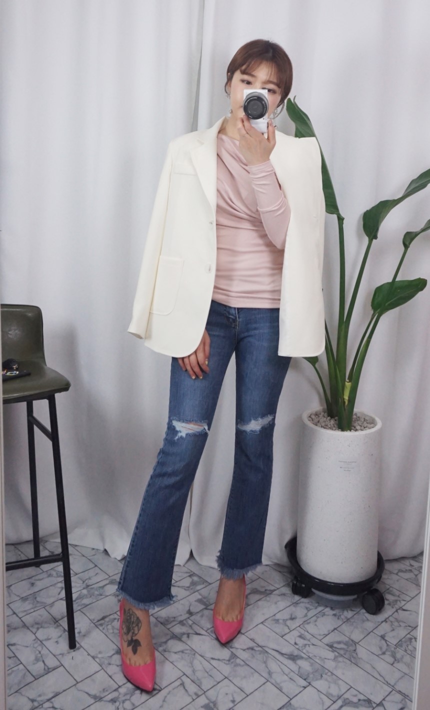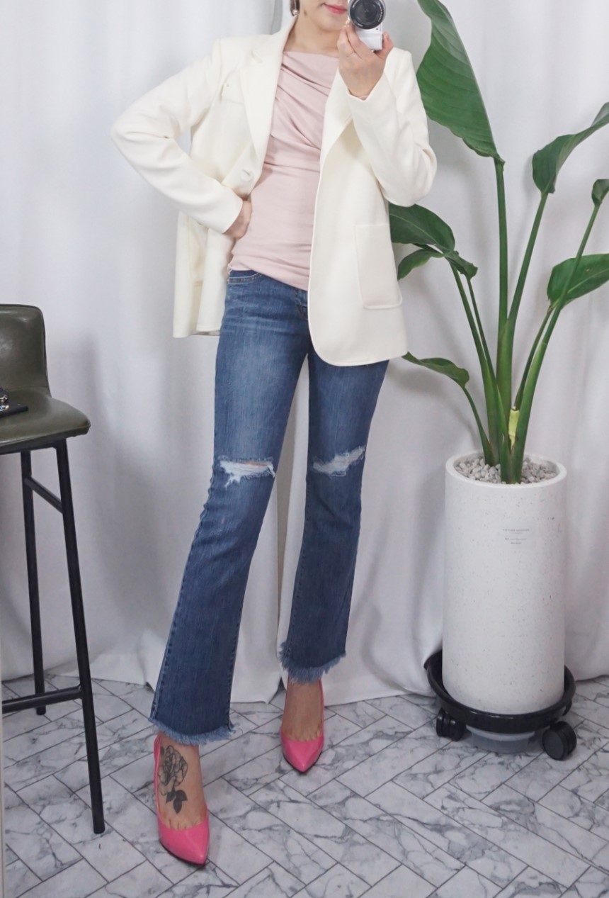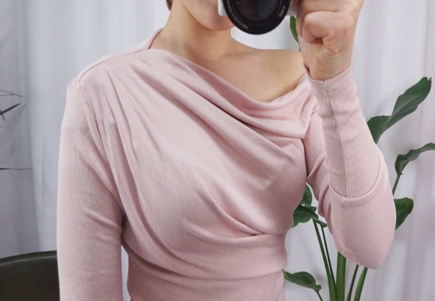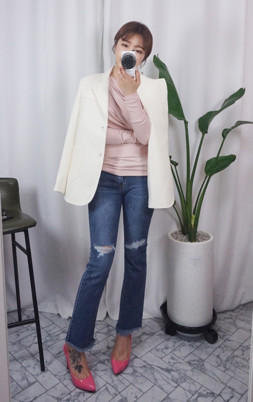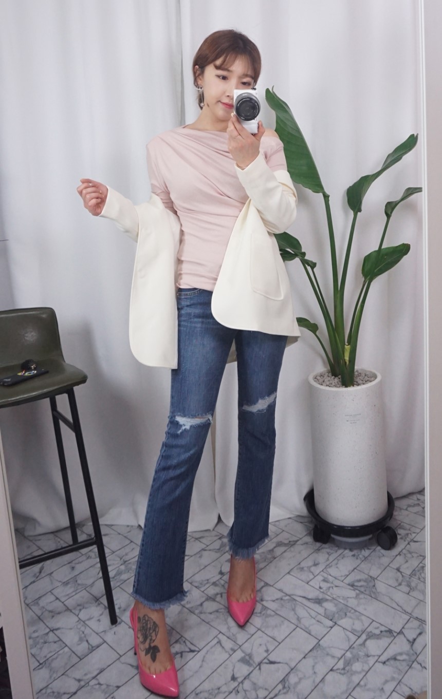 여성스러운 셔링 디테일에 슬림한 티셔츠에요:)