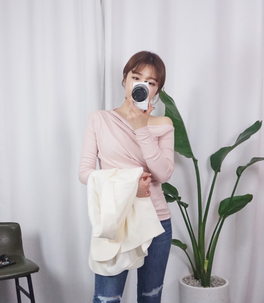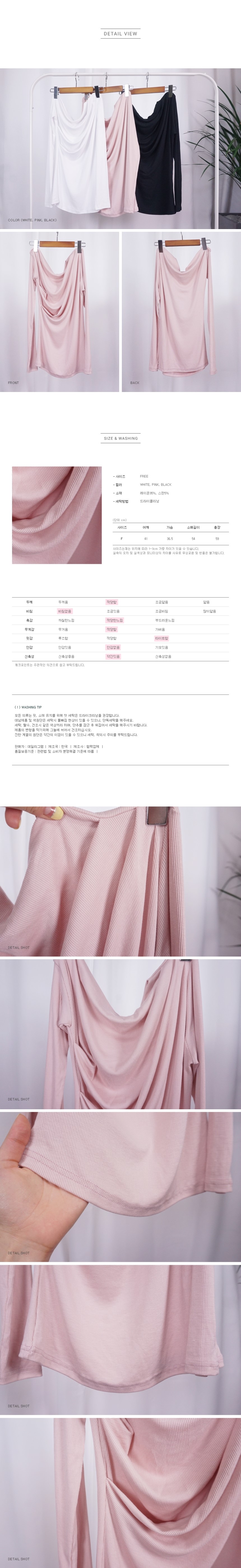 겹겹으로 셔링이 내추럴한 핏을 연출해주구요,오픈숄더로 숄더라인을 섹시하게 부각시켜줘요.