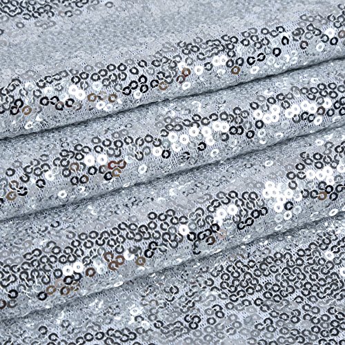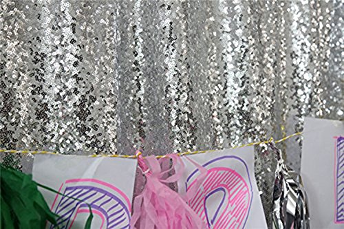 TRLYC 20 Ft X 10 Ft Silver Sequins Backdrop Curtain