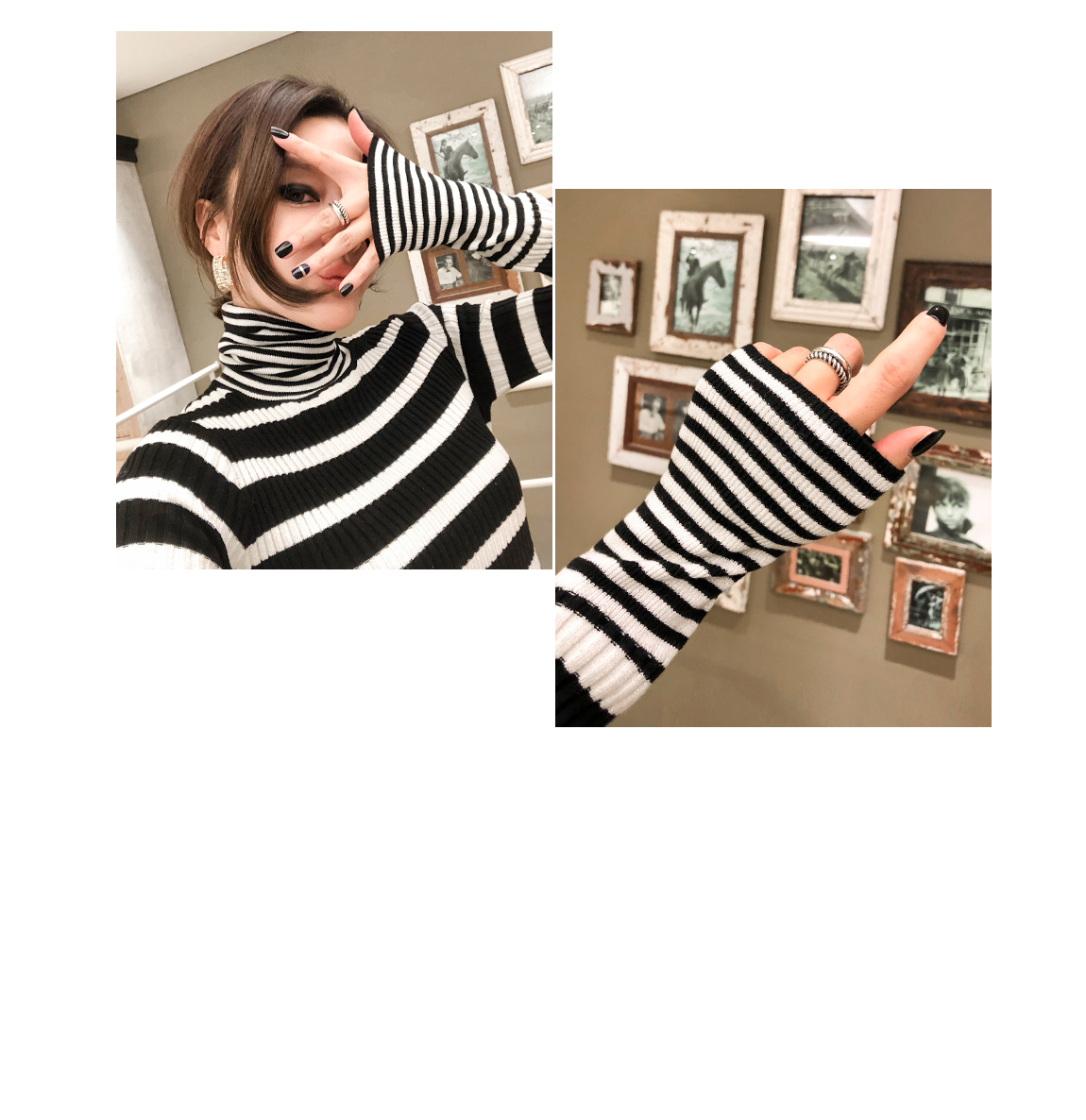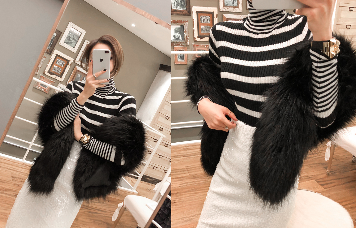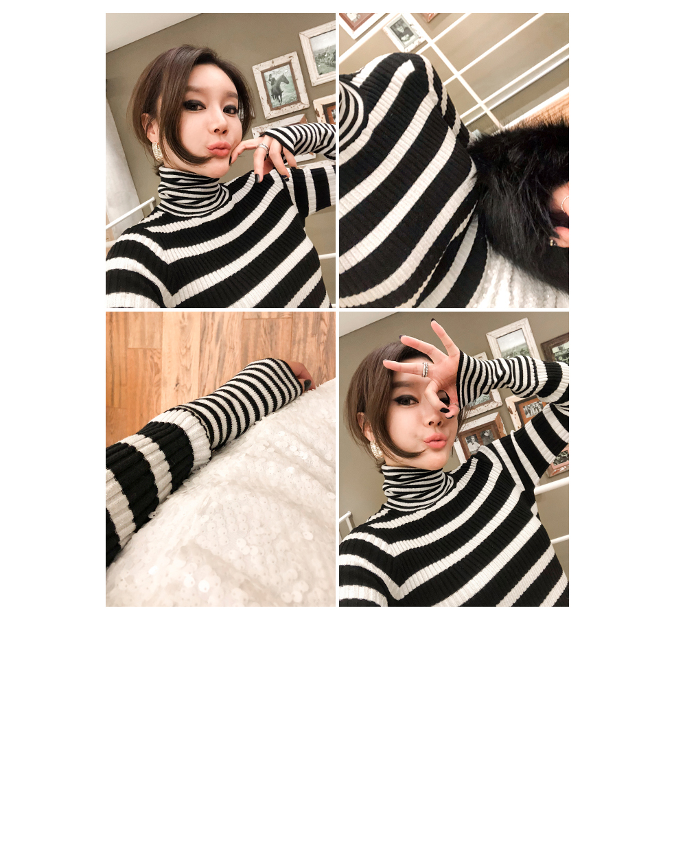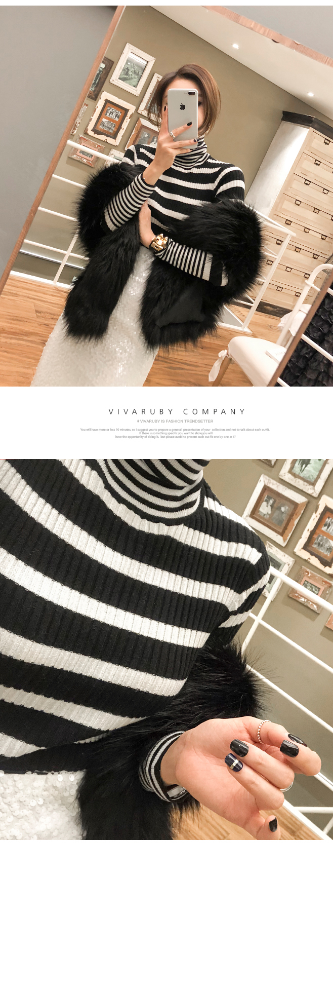 袖とネックラインにカップストライプパターンでポイントを与え