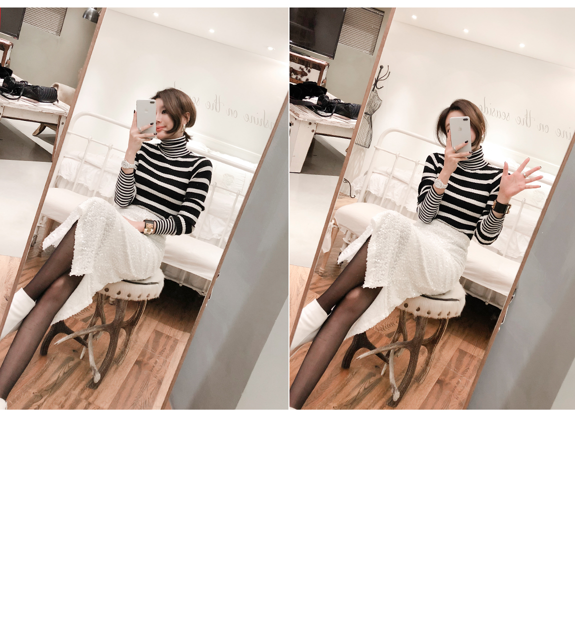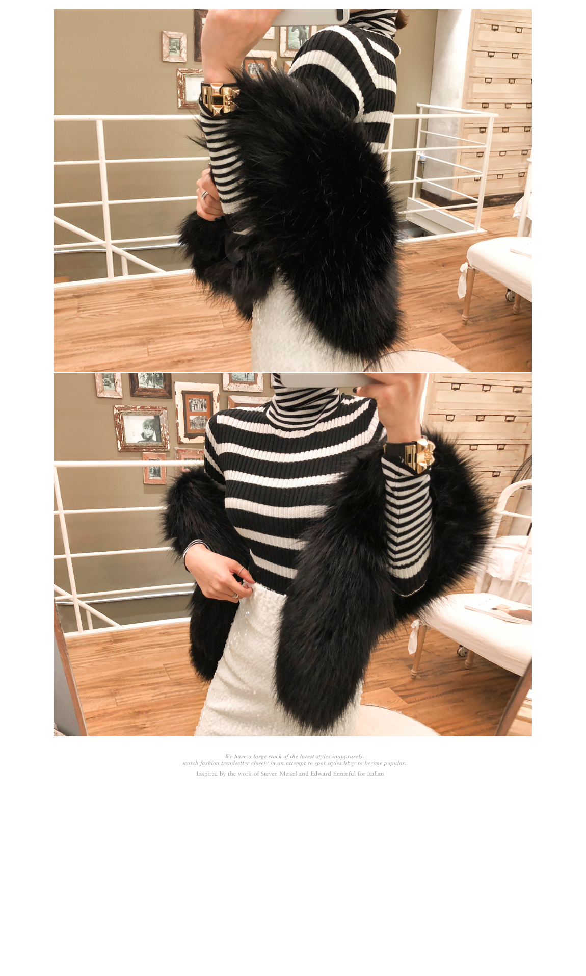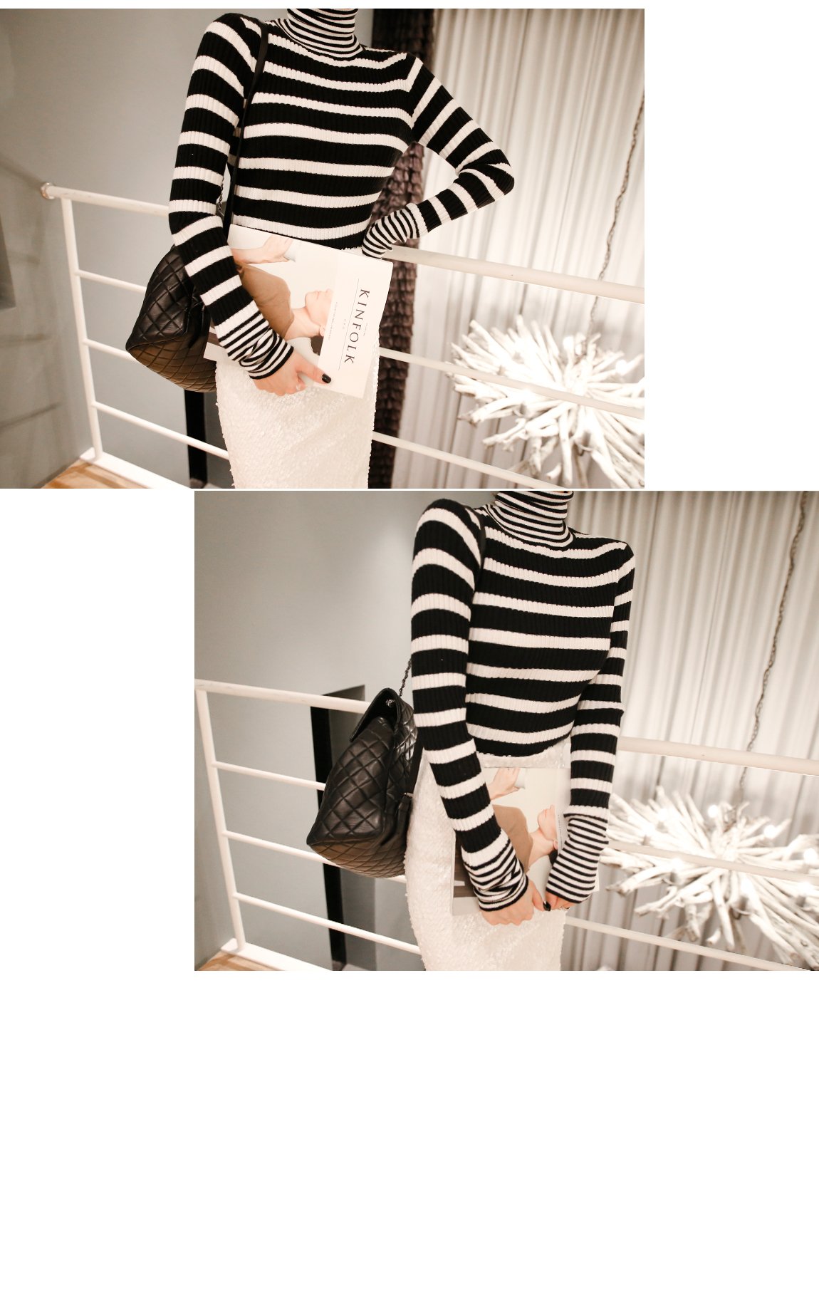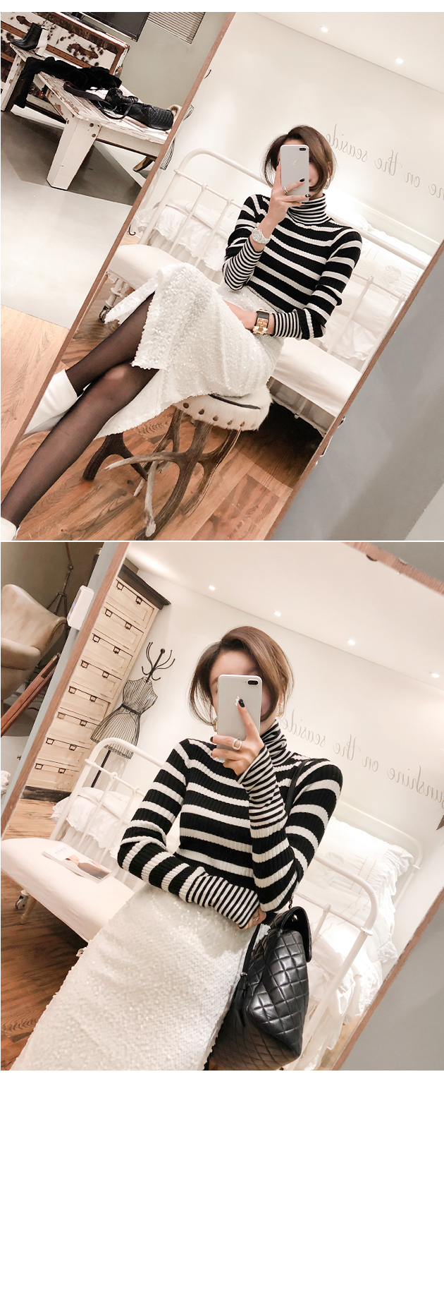 袖とネックラインにカップストライプパターンでポイントを与え