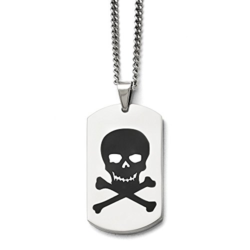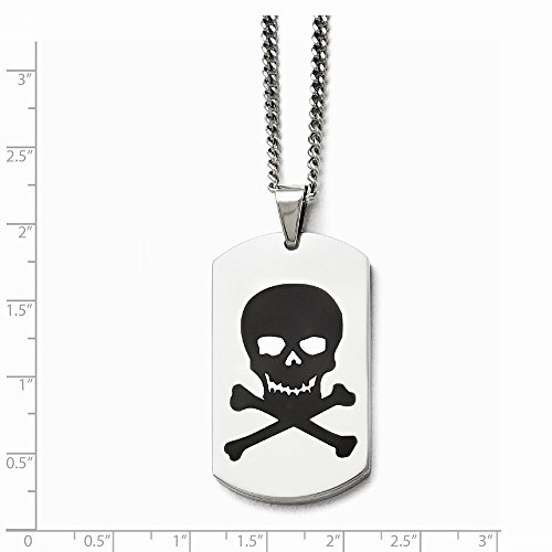 Stainless Steel Polished Black Enamel Skull Dog Tag Necklace Chain 22" - with Secure Lobster Lock Clasp (20.75mm)