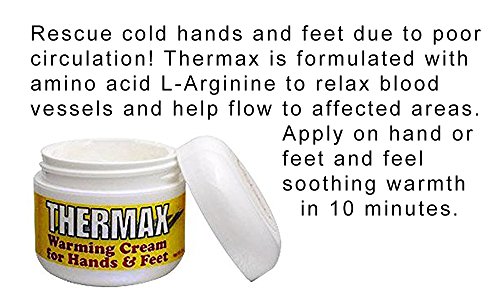 Arthritis Pain Relief Cream. If you have arthritis or suffer from poor circulation, just rub on miracle Verseo's Thermax Warming Cream and feel soothing warmth spread through your cold hands and feet in minutes. This herapeutic topical cream is especially formulated with natural L-Arginine and other amino acids known to help stimulate warming circulation.