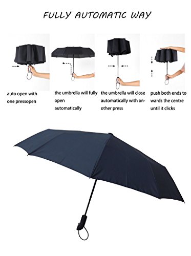 -. Feature : WIND-DEFYING 10-RIB CONSTRUCTION: Most umbrellas are made of 8 aluminum ribs but Fengju is fortified with 10 resin-reinforced fiberglass ribs that flex slightly to withstand powerful gusts without turning inside out. The fiberglass hinges are equipped with a fail-safe technology that will invert the canopy but will not cause the ribs to bend or break. Compact, lightweight, stylish and durable for the best quality weather protection. / SUPERIOR WATER-REPELLENT: Made from 210T pongee.All raindrops bounce or rolls off smoothly, protecting you against the rain / LPERFECT TRAVEL SIZE: Large 41" diameter canopy easily provides outstanding protection for 2 persons; A 3 fold telescopic shaft is collapsible to a small 12'' length. Also comes with a travel sleeve to keep your bag dry. Weighs less than 1lb for easy storage in purses, briefcases, backpacks, luggage and more! / AUTO OPEN & CLOSE CANOPY IN SECONDS: With a push of a button, the umbrella automatically opens and closes.Great for quick entry into a car, building, or tent.Easy and simple to use with just 1 hand / Lifetime Warranty: If you're not 100% satisfied with our product, let us know and we will give you full refund or a free replacement.