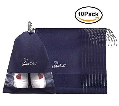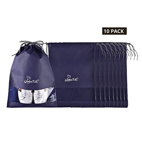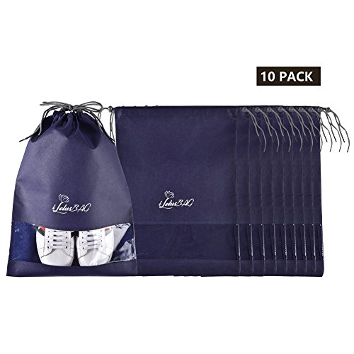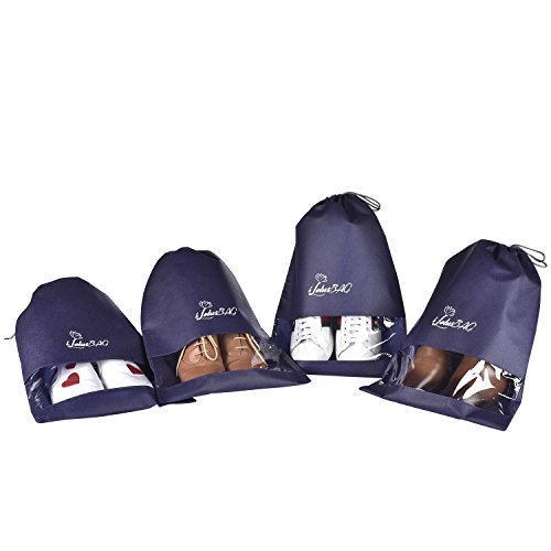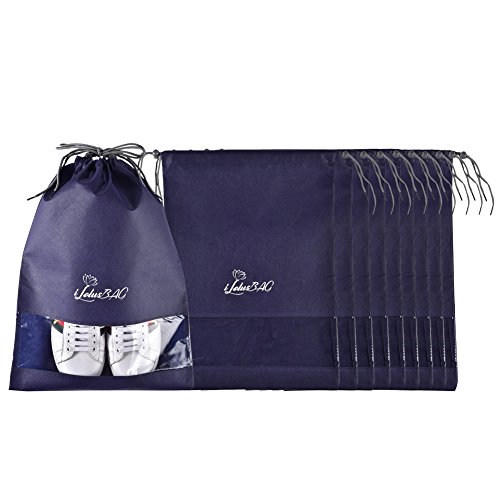Product Description X-Large bagsThese will hold large size shoes and the items you want to put in. The wide opening makes it easy to slide shoes in and out. Shoes of sizes 11.5 (US) and 43 (EU) can be stored as a pair in one bag. The View Through WindowMakes it easily and quickly to find the shoes without having to open each bag. Not only for shoes! This bag is durable, fold-able and lightweight, you can put anything you want to pack in it. You can take good care of your shoes in travel and when do seasonal storage packing. This shoe bags will divide the shoes into your clothes or other items and make them clean. When you need to organize the off-season shoes into your closet, the shoe bags will protect your shoes clean, and you could easily find each shoe with the clear view window. 0