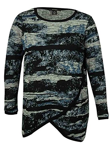 Style Co. Women's Tulip-Front Polyester Sweater (PL, Blue Marble)
