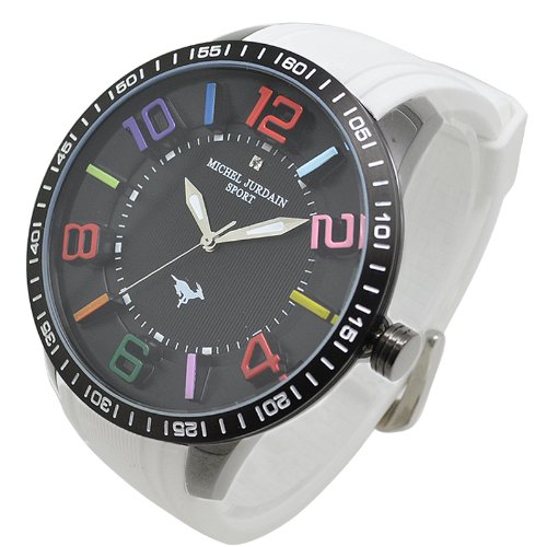 -. Title : [ミッシェルジョルダン]michel Jurdain 腕時計 1Pダイヤモンド ステンレス ケース シリコン ベルト ウォッチ ブラック×ホワイト MJ-7700-2 メンズ