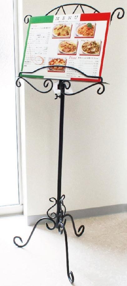 | 高級感あふれるデザインのアイアンスタンド。高さや角度調節可能。A6~A3まで対応しておりますので、アレンジ次第で個性的に♪ |