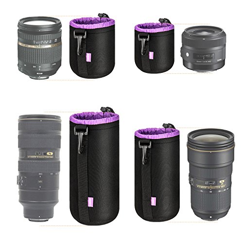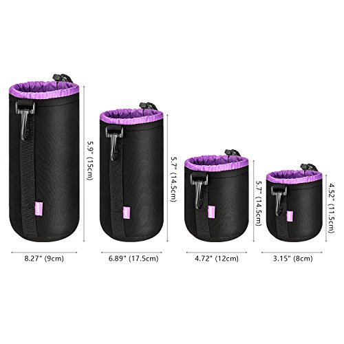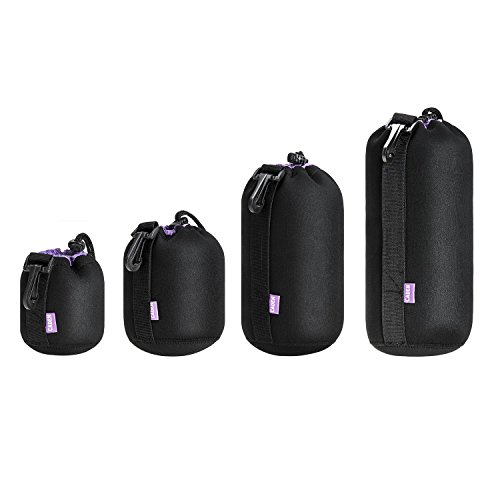 Set Includes: Peacechaos Small, Medium, Large and Extra Large Neoprene Pouch Bags for DSLR Camera Lens