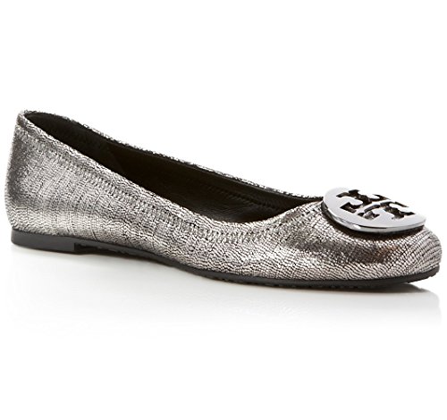 Textured leather takes on the look of shimmering sequins on Tory Burch's signature ballet flats, finished with gleaming logo hardware to match.