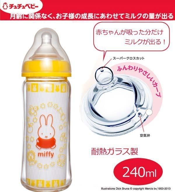 | 汚れやニオイが付きにくく、お手入れが楽な耐熱ガラス製哺乳びんです。チュチュベビーの乳首は「ママのおっぱい」がお手本♪ママのおっぱいのように「赤ちゃんが吸った分だけ」ミルクが出るようになっていますので、S・M・Lのサイズを月齢に応じて変える必要がありません。空気弁の調節が不要なスーパークロスカットの乳首です。 |