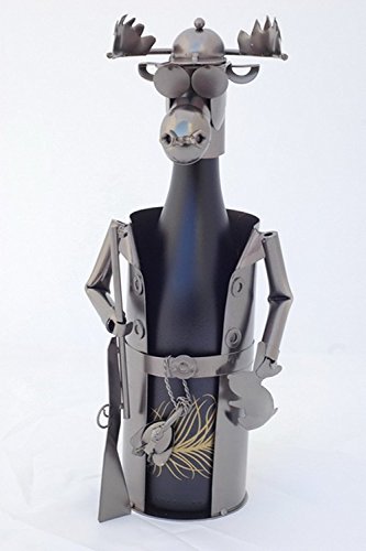 12" Hunting Moose Metal Wine Bottle Holder Caddy Decor Figurine By Snow Courage