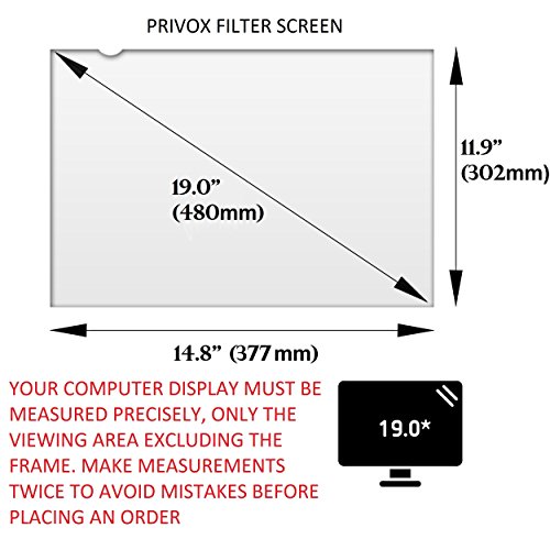 IMPORTANT! COMPARE YOUR SCREEN SIZE AGAINST 2ND PHOTO BEFORE PLACING AN ORDER. CONTACT US FIRST IN CASE OF DOUBT. Made of durable polymer plastic, this extra slim, lightweight and frameless computer screen privacy filter is designed to fit desktop LCD monitors with a diagonally measured 19" screen and a 5:4 aspect ratio. NOT FOR WIDE SCREEN. CAN BE TRIMMED TO DESIRED SIZE!