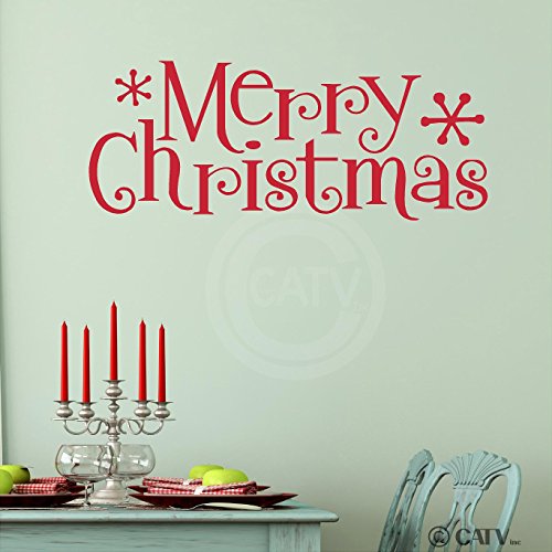 Merry christmas vinyl lettering wall decal (12"H x 30"L) (Red)