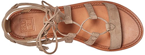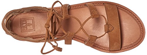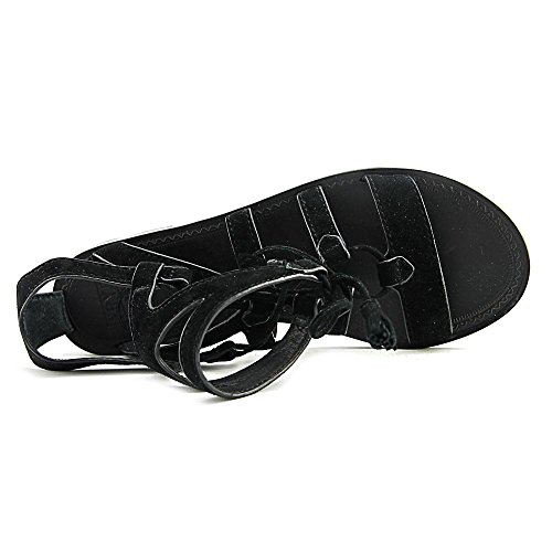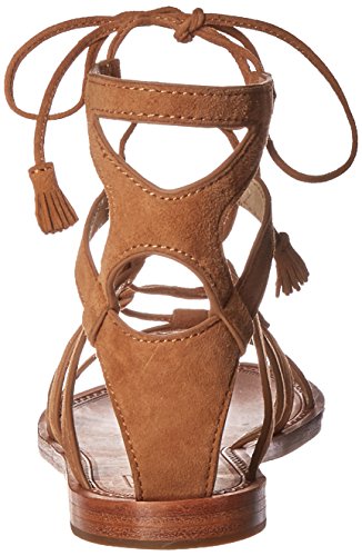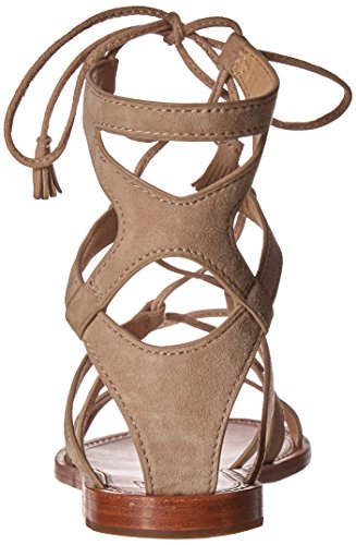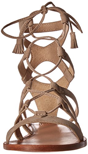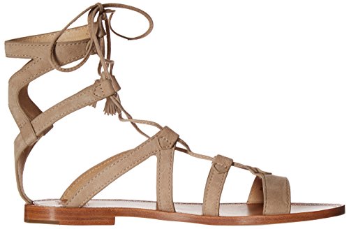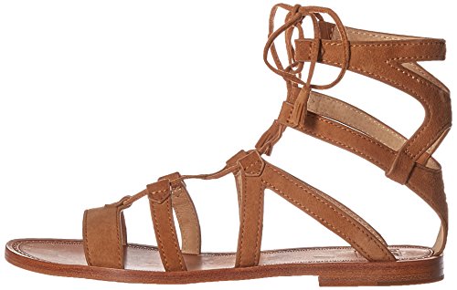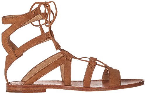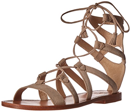 Gladiator-inspired sandal featuring strappy leather upper with slender lace-up closure