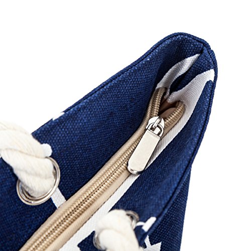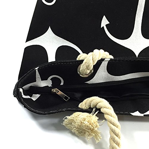 Product Description Dimensions:L19.7x H13x W5.9 Inches. Large enough to hold towels, bathing suits, flip flops, hats, lotions, books and so on. Easy to carry - cotton rope top handlestrap Zipper closure to keep your stuffs safe. Inner pocket to hold your small stuff. Perfect for summer beach time,picnic,travel,shopping. 0