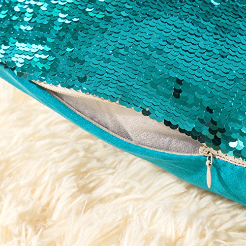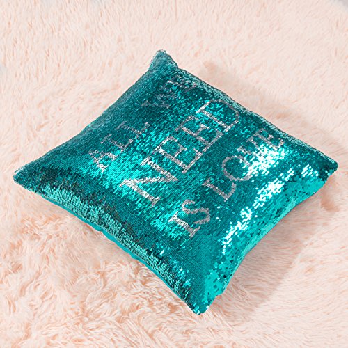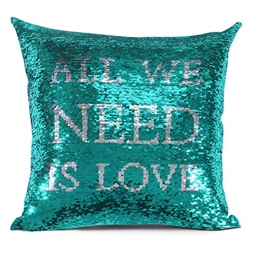 Smiry Reversible Sequins Mermaid Fish Scale Pillow Cover Cushion Cover Throw Pillow 16"x16" Home Decorative Pillowcase Stable Words
