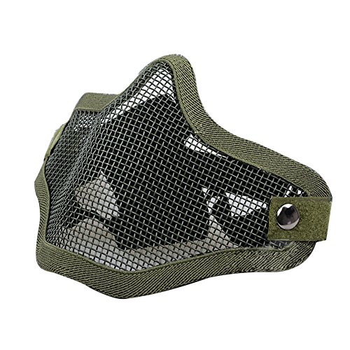 -. Feature : Made of high quality steel material,can withstand high impact;The double elastic headband can be adjusted to adapt the user's head. / This is a half face mask protector, which is tactical stylish looking, very comfortable and breathable protection. / One Size Fits Most: With two adjustable elastic belt strap half mask fit most people / Absolutely no fogging on the wire mesh. / Wider range use- can be used in airsoft, hunting, paintball, shooting and any other outdoor activities.