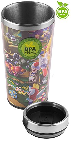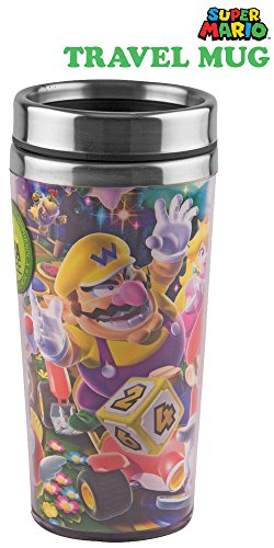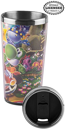 Show off your love of Mario with this officially licensed travel mug by Just Funky! Travel mug holds approximately 16 ounces and features a fun image of Mario and his friends. Includes crew down lid. Sure to make a great gift for your favorite Mario fan! Not dishwasher or microwave safe. Hand wash only.