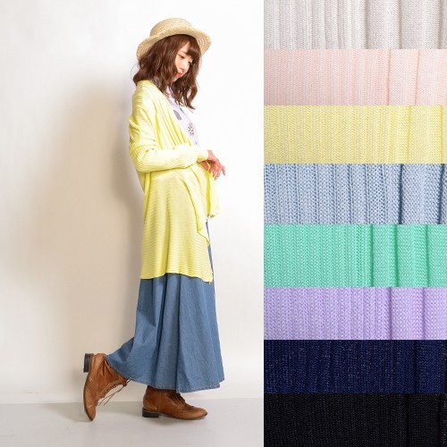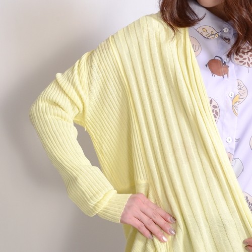 | サイズ | フリーサイズ | | 実寸 | 平置き(cm) 着丈 70身幅 55袖丈 57 | | 素材 | アクリル100% | | 生産国 | 中国 | | 裏地 | なし | | 生地の伸縮 | あり | | 生地の透け感 | 少しあり | | カラー | 01. クロ 02. シロ 03. コン 04. グレー 05. グリーン 06. ベージュ 07. イエロー 08. ラベンダー | | 注意点 | ▼綿混合商品は洗濯時に多少縮む事がございます。 ▼パソコン、モニター等の環境により、実際の商品素材カラーが多少異なる場合が御座います。予めご了承ください。 ▼お手数ですが必ずお買い物ガイドを一読頂いてからご利用いただきますようお願い申し上げます。 | |