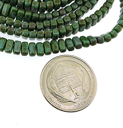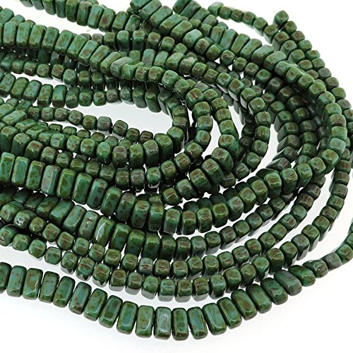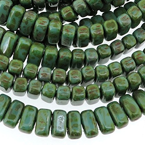 Czechmate 2mm X 6mm Brick Glass Czech Two Hole Bead - Persian Turquoise Picasso (50 beads)