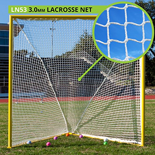 BEST CHOICE FOR BACKYARD LACROSSE - The durable heavy duty nylon cord in our lacrosse goal netting is designed to hold up to rain snow and heat ensuring that your net will last through the seasons
