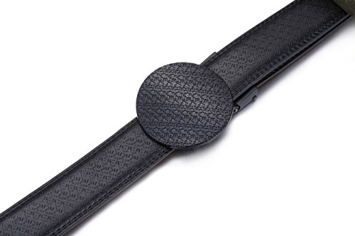 MAXIMUM DURABILITY - Leather strap is a bit wider than 1 and an 1/8" presenting the perfect look of a fine, genuine leather quality belt, complemented with an HIGHLY FASHIONABLE stylish buckle that is elegantly designed with class. Scratch resistant buckles made to last.