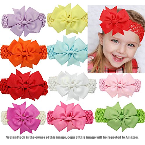 Welandtech Boutique Baby Girls Crochet Headbands Bows Hairband Set 10 Pack