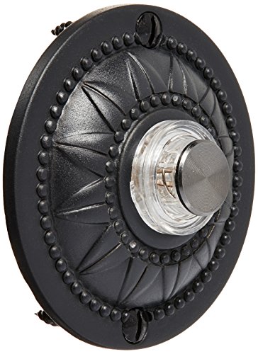 Lighted White, Push Chime Button, Solid Brass In A Rust Finish, Round Decorative Escutcheon, 2-1/4"D Flush Mounted Hardwired, Clam Shell Pack.