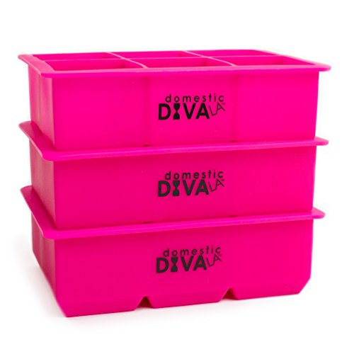 Large Silicone Ice Cube Trays 3 Pack Best Jumbo 2" Cocktail Cubes & Cold Less Diluted Beverages - BPA Free Easy Release Molds Freeze Baby Food Popsicles Chocolate Candy & More! by Domestic Diva LA